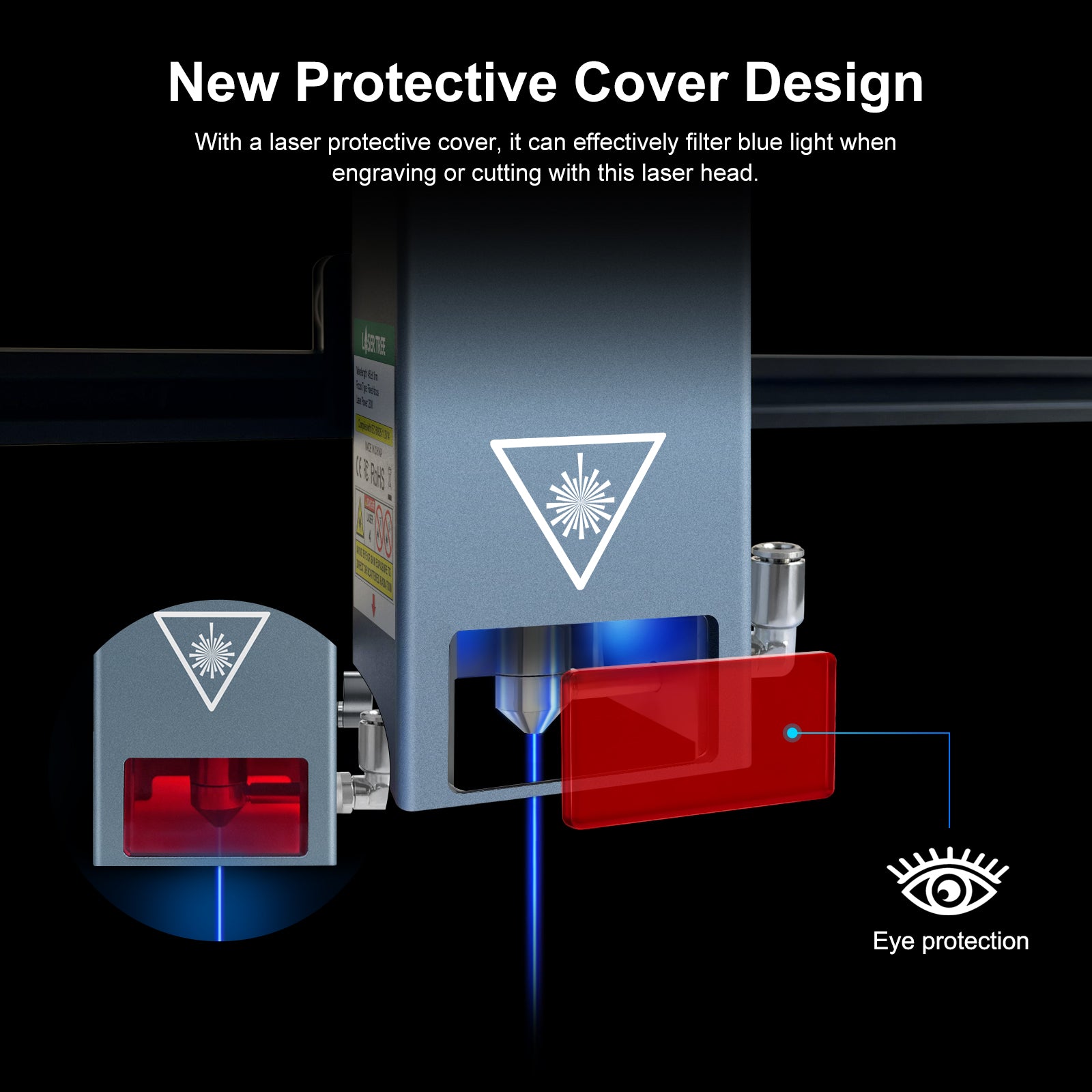 The new laser filter has a single-sided viewable window design. It not only prevents blue light from stinging your eyes, but also allows you and people around you to watch laser engraving without goggles in the reserved window.